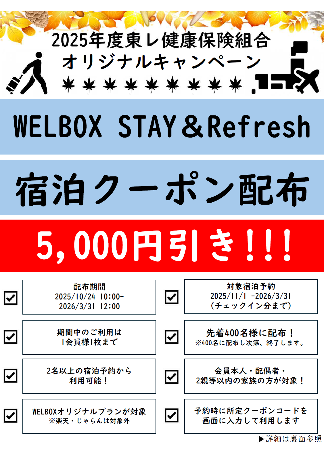 2025年度 WELBOX Stay&Refresh宿泊クーポン配布キャンペーンについて(お知らせ)